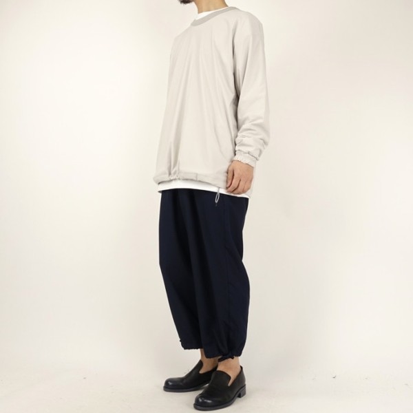シルエットはややゆったりとした感じで、裾に通された紐でサイズ調整が可能となっています。