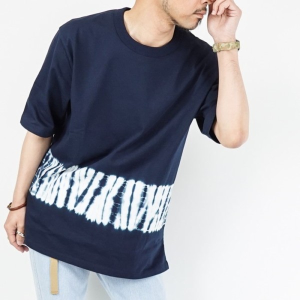絞り染めと呼ばれる技法で染めたカーリーのTシャツ