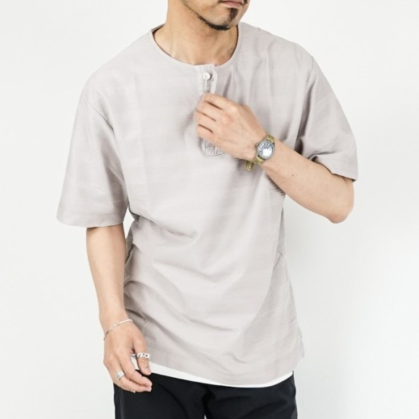 さりげなくボーダー柄になったヘンリーネックTシャツ