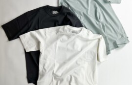 身幅をゆったりとさせて腕回りの脇も大きめにとっているので、色々なアイテムと重ね着しやすい作りになっています。
