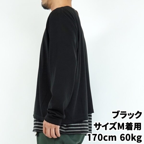 WASHABLE WOOLY COMBI BORDER SLANT LAYERED SHIRT/ウォッシャブルウールレイヤードカットソー