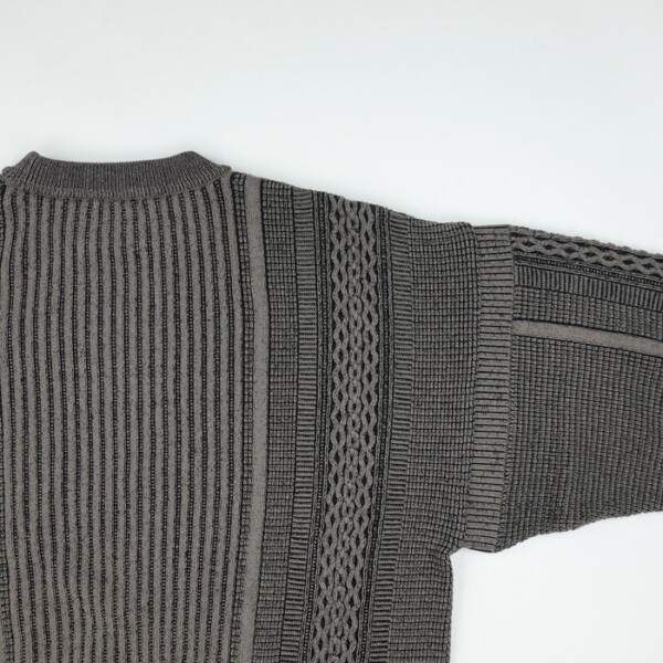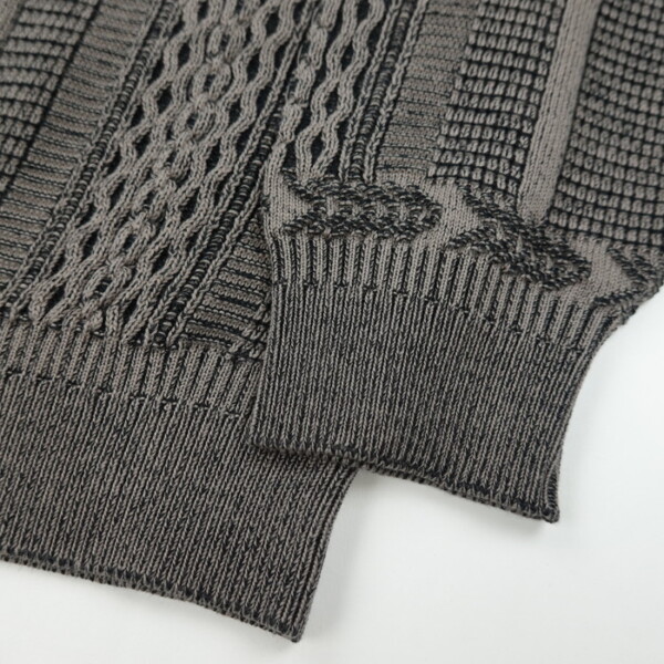 10ゲージ6本取りの編み地は、目が詰まっていてしっかりとした作りなので、型崩れしにくく、長く愛用できる一着です。