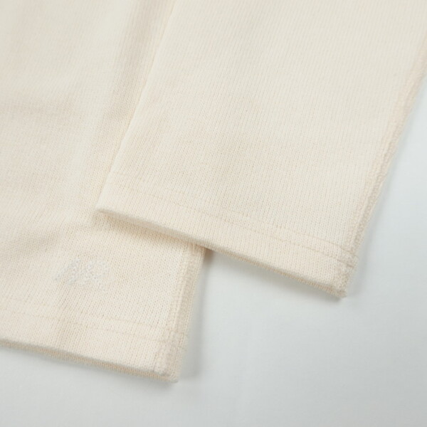 使用されているのは、撚らない2本の糸を1本として編み上げたヘビーウェイト天竺織り。