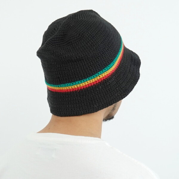 このハットのもう一つの特徴は、目を引くラスタカラー。