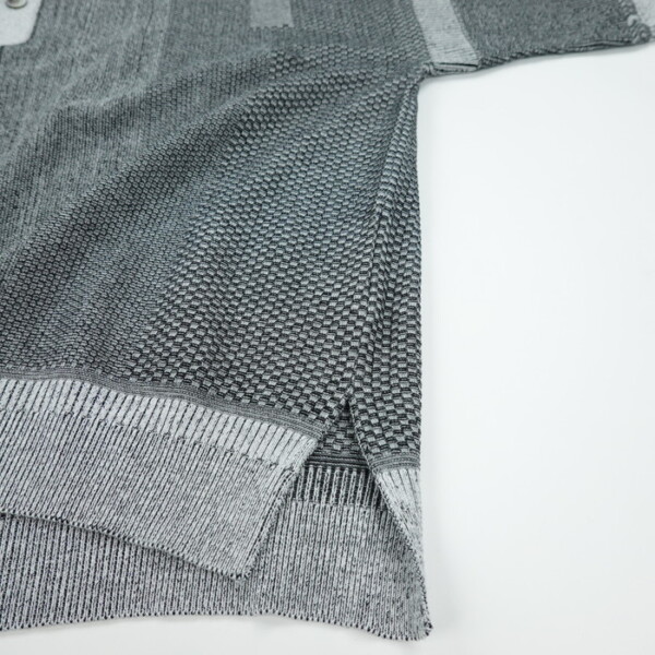 身頃中央から脇に向かって、鹿の子編みの凹凸がグラデーションのように変化。