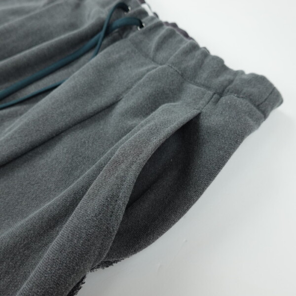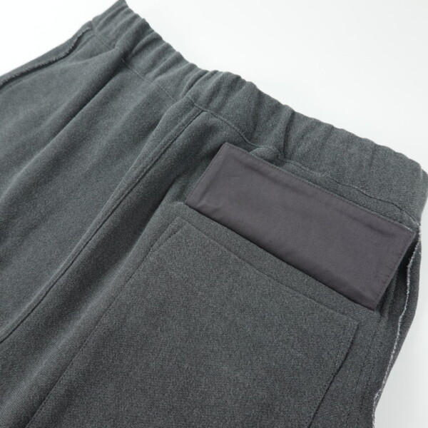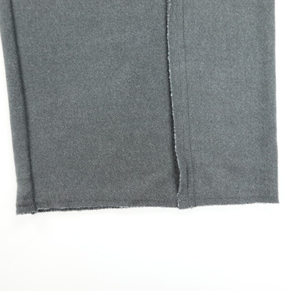 さらにサイドシームを断ち切りにし、生地方向を逆にとることで、時間とともに脇線が少し巻いていく独特の表情も出てきます。これはデニムの色落ちのように、穿く人それぞれの個性が表れるポイント。