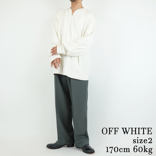 オーバーサイズながらルーズに見えないのは、首まわりと肩のラインが計算されているから。