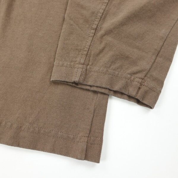このロンTの魅力は、まずアメリカンコットン100%という素材選び。 18番手の糸を使い、しっかりしているのに着心地はソフト。