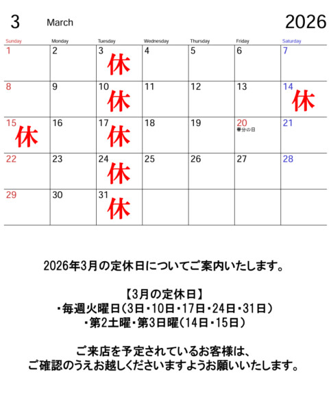 ご来店を予定されているお客様は、ご確認のうえお越しくださいますようお願いいたします。