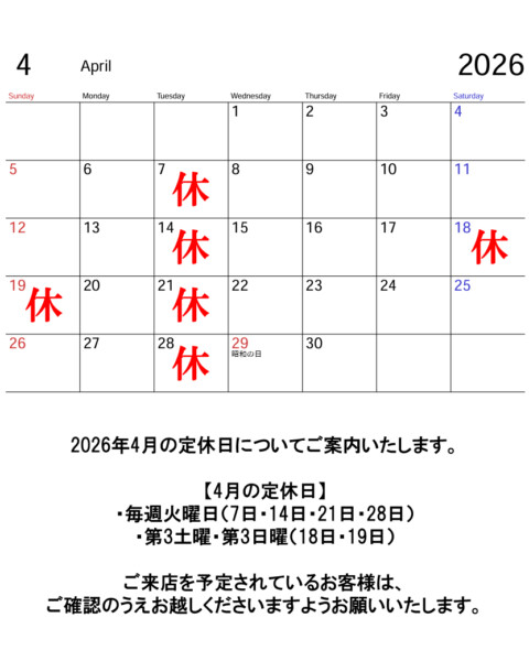 ご来店を予定されているお客様は、ご確認のうえお越しくださいますようお願いいたします。